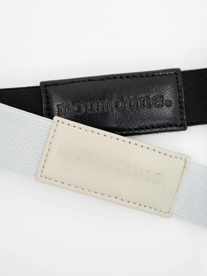 ゴムバンドの繋ぎ目にはシューズと同じシープレザーを使用し、ブランドのロゴの型押しを施しました。