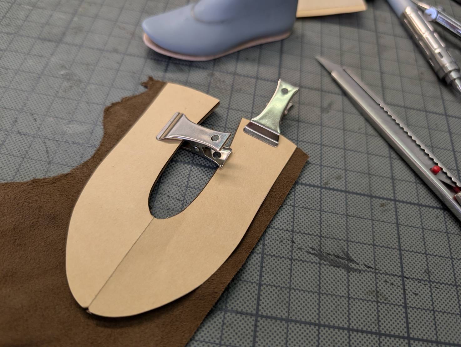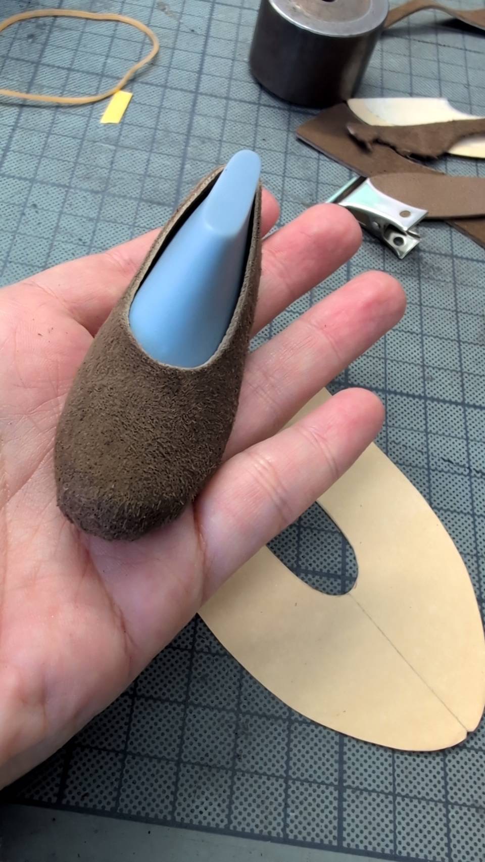 使用する革は、moumouneと同じイタリアンゴートシルキーの残革を使用し、ゴムや革ひもも、実際の靴と同じ素材で作成しています。
